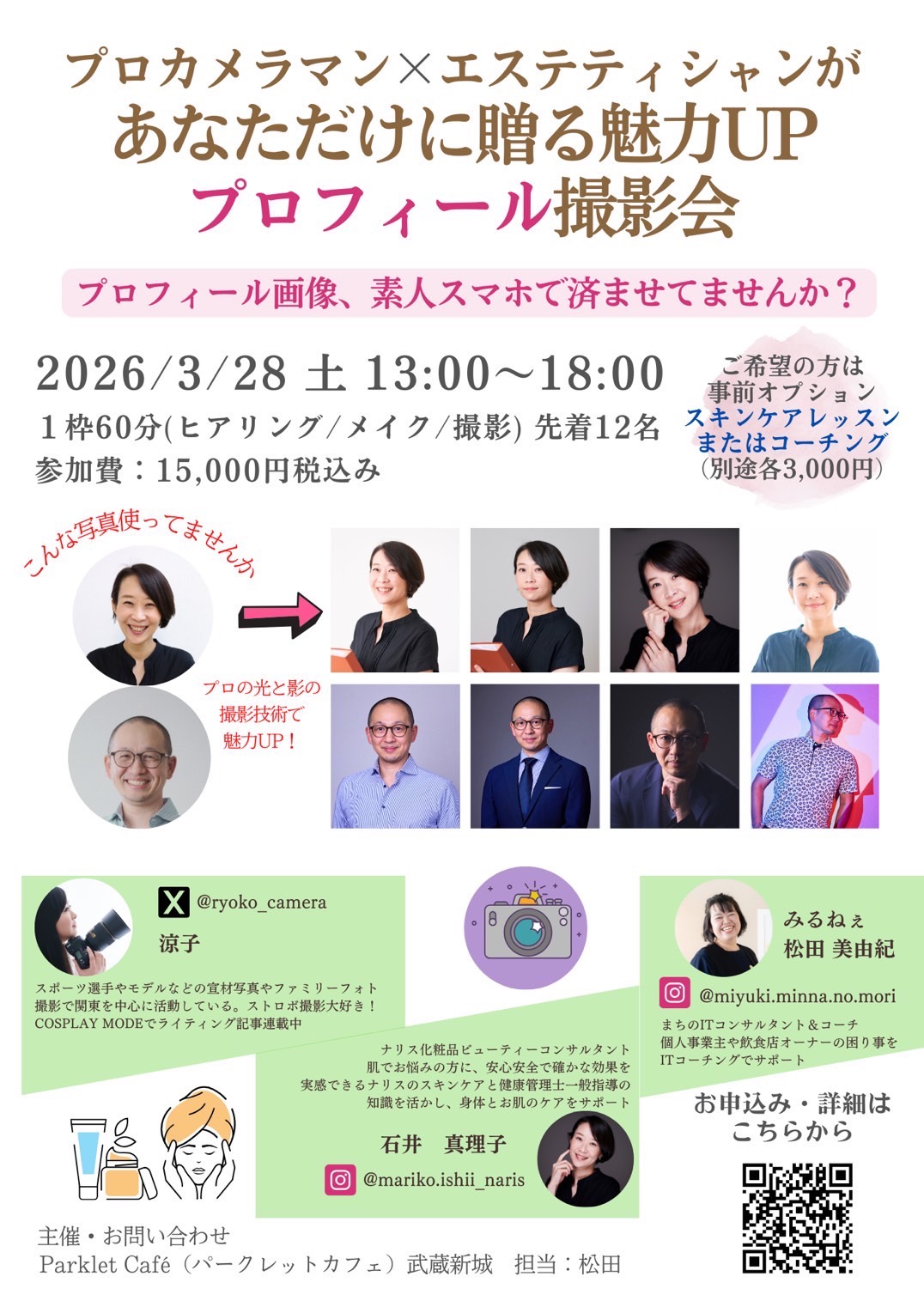 【3/28】プロカメラマン×エステティシャンが贈る!あなたの魅力を引き出すプロフィール写真撮影会