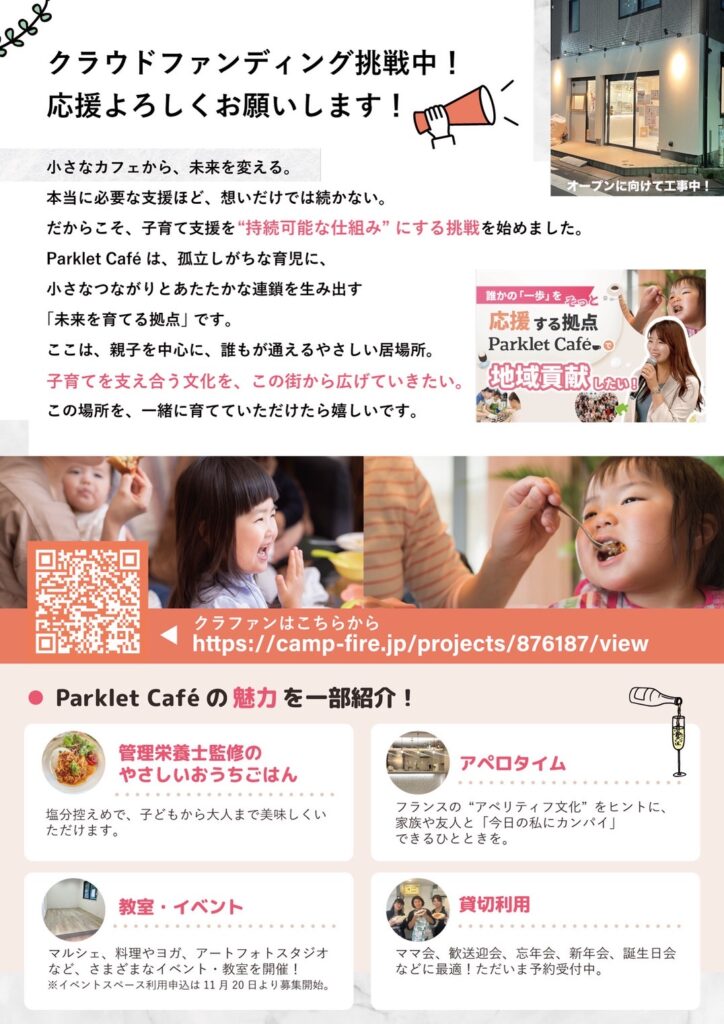 いよいよ、誰もがほっとできる居場所ParkletCafeがオープン!!
