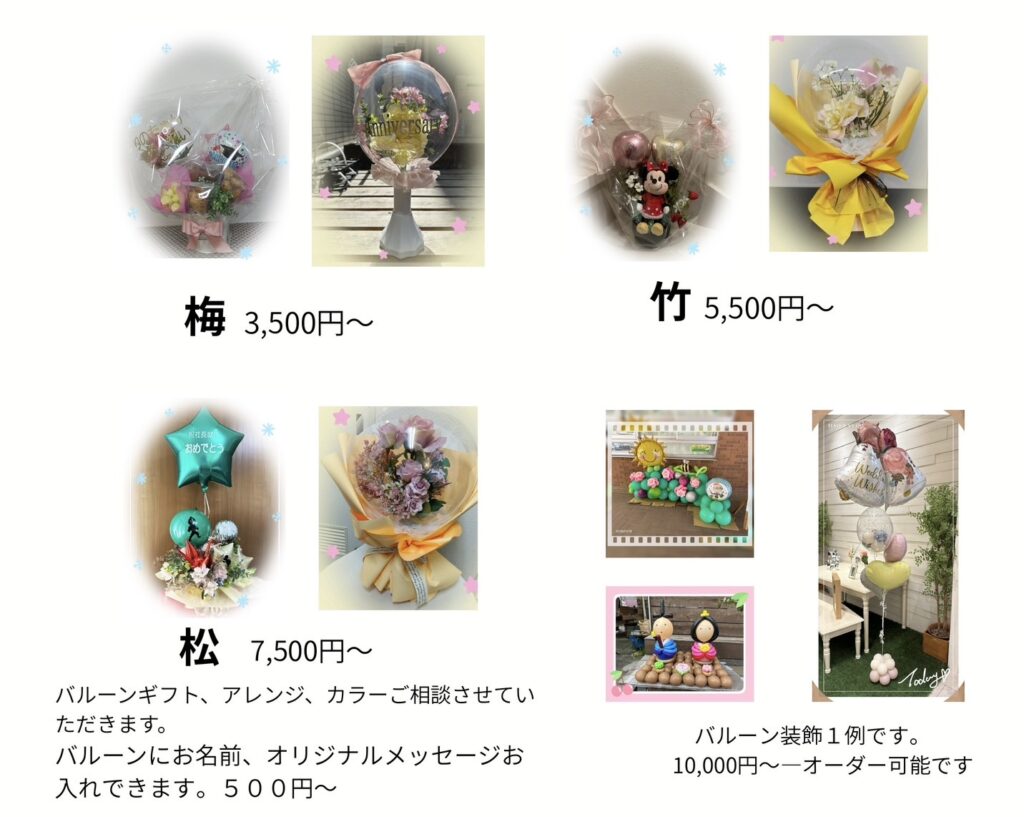 バルーンの中に造花が入ったギフト(基本3種)
